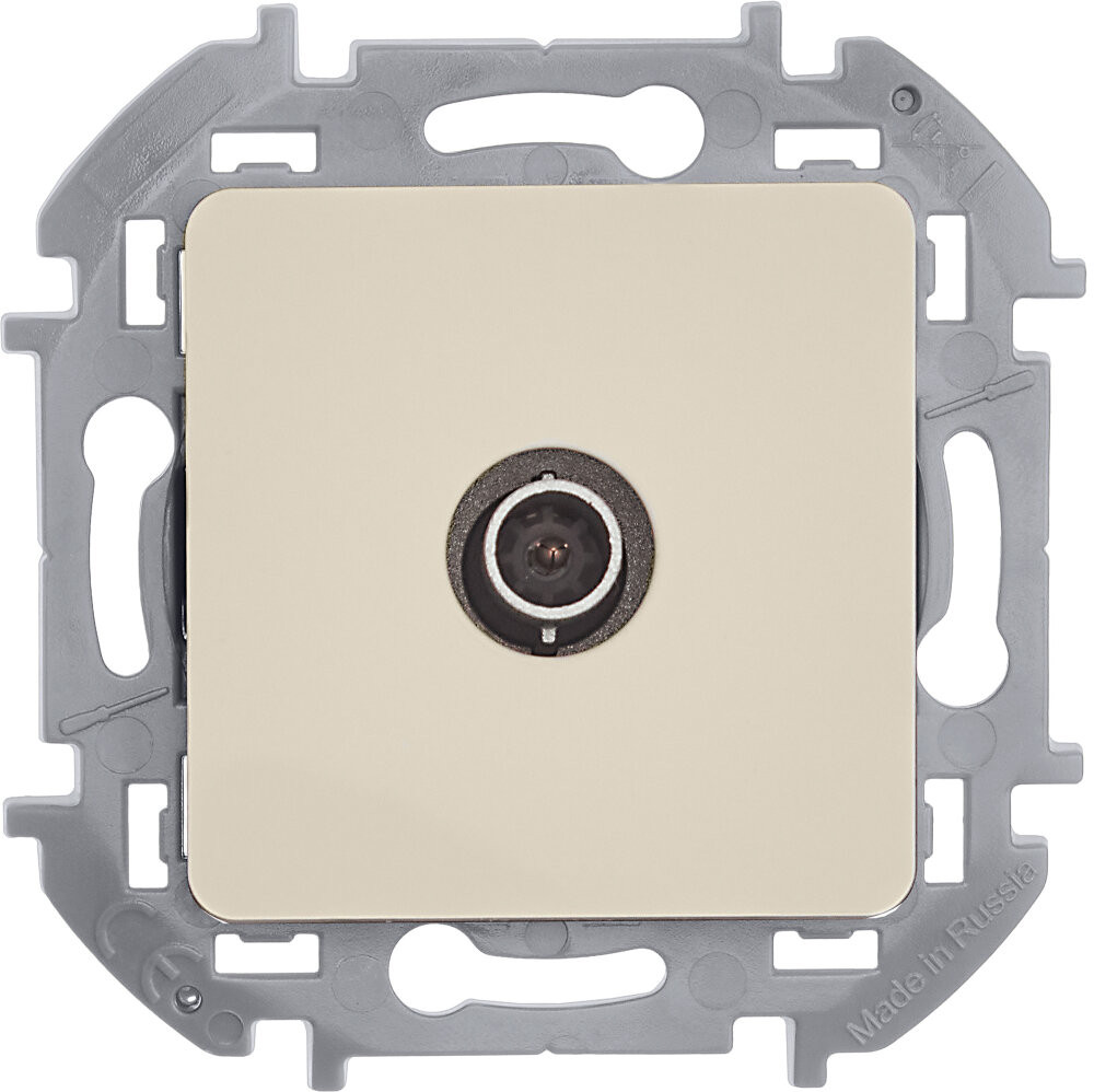 Розетка телевизионная для скрытого монтажа Inspiria, для схемы ''звезда'', затухание 1дБ, 4-2400МГц, поддержка обратного питания для активных антенн до 500мА, цвет ''Слоновая кость''. Предназначена для подключения одного ТВ приемника к антенне, а также для организации телевизионной сети по схеме ''звезда'', когда к каждому телевизору прокладывается своя линия от источника сигнала.