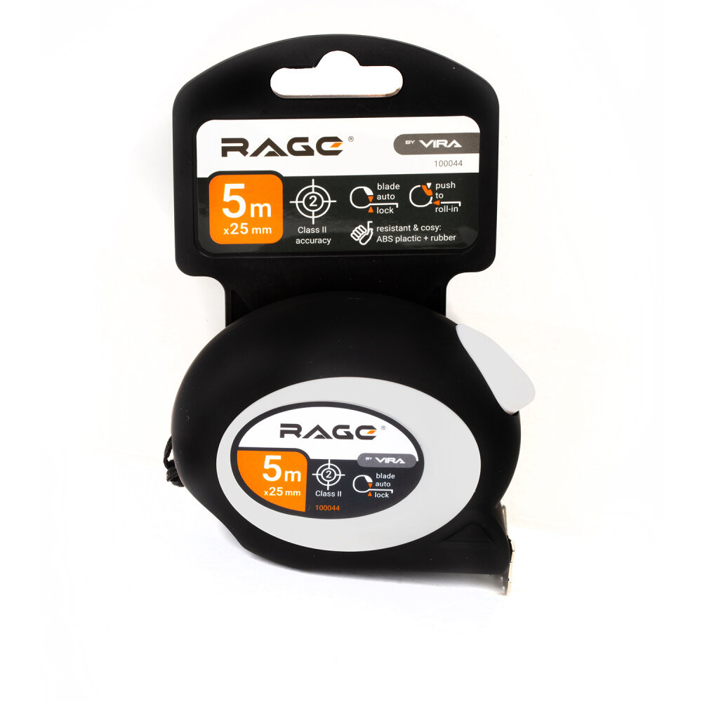 Рулетка с прорезиненным покрытием Soft-Touch автостопом 5 м х 25 мм (Rage) 100044