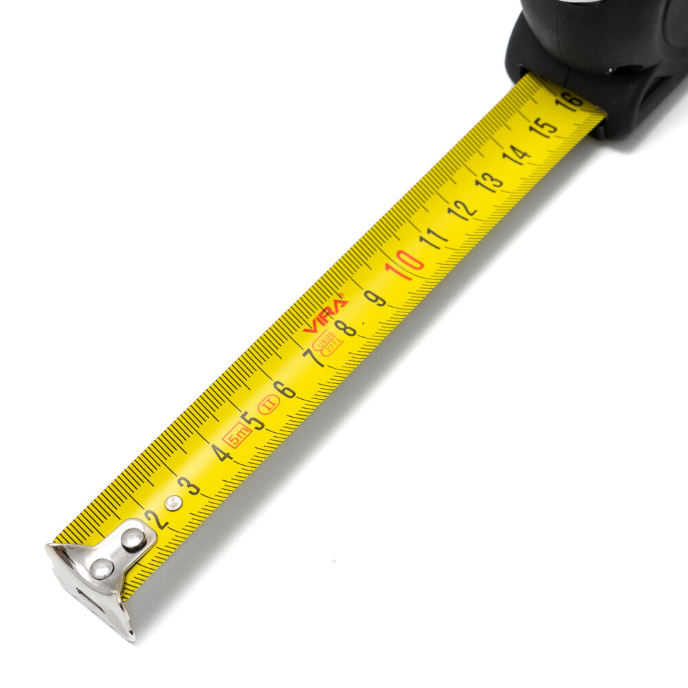 Длина ленты 5 метров. Ширина измерительного полотна 25 мм. Автоматический стопор освобождает от случайного сматывания рулетки – Вы концентрируетесь только на работе и не удерживаете никаких кнопок, чтобы фиксировать ленту. Увеличенная толщина полотна дает возможность работать с инструментом на ограниченной длине без посторонней помощи – лента не будет изламываться. Лента состоит из трех слоев - стальная основа, вторичное покрытие и защитный слой. Благодаря овальной форме рулетка приятно обхватывается кистью руки. Корпус из ударопрочного ABS пластика выдерживает падение с высоты до 5 метров. Дополнительное обрезиненное покрытие не даст рулетке выскользнуть из ладони. Разметка на ленте нанесена в соответствии со вторым (II) классом точности. Погрешность +-1.3мм. Плавный ход ленты при разматывании и сматывании обеспечивается пружиной из высокопрочной стали MN65. Рулетку удобно носить за тканевый ремешок или прикреплять к поясу за жесткое металлическое крепление.