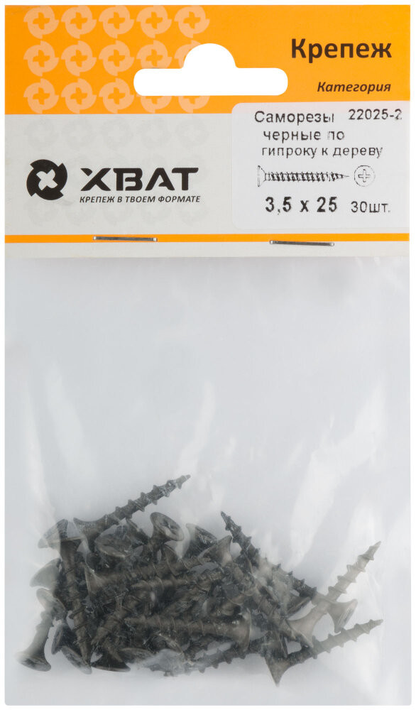 Саморез гипсокартон/дерево 3,5х25 черный (30шт) (ХВАТ) 22025-2