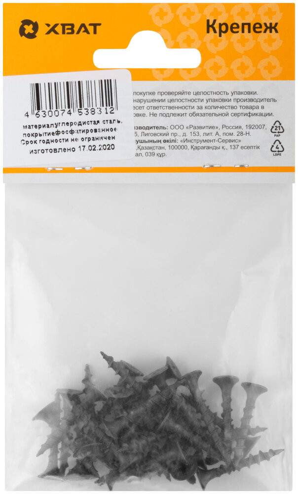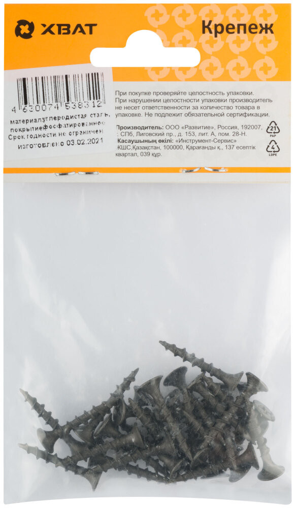 Полное описание товара Саморез гипсокартон/дерево 3,5х25 черный (30шт) (ХВАТ) 22025-2