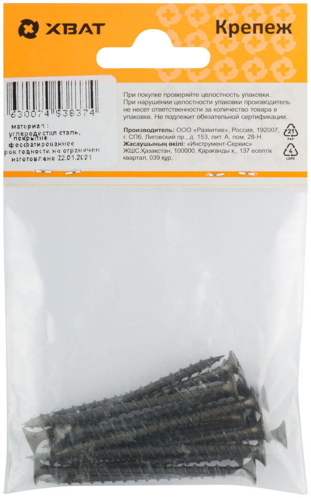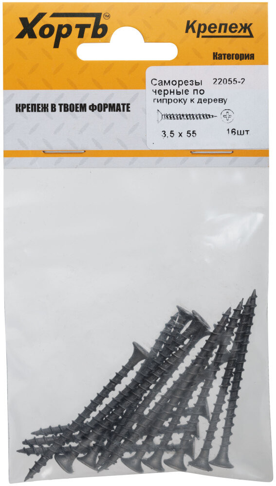 Полное описание товара Саморез гипсокартон/дерево 3,5х55 черный (16шт) (ХВАТ) 22055-2