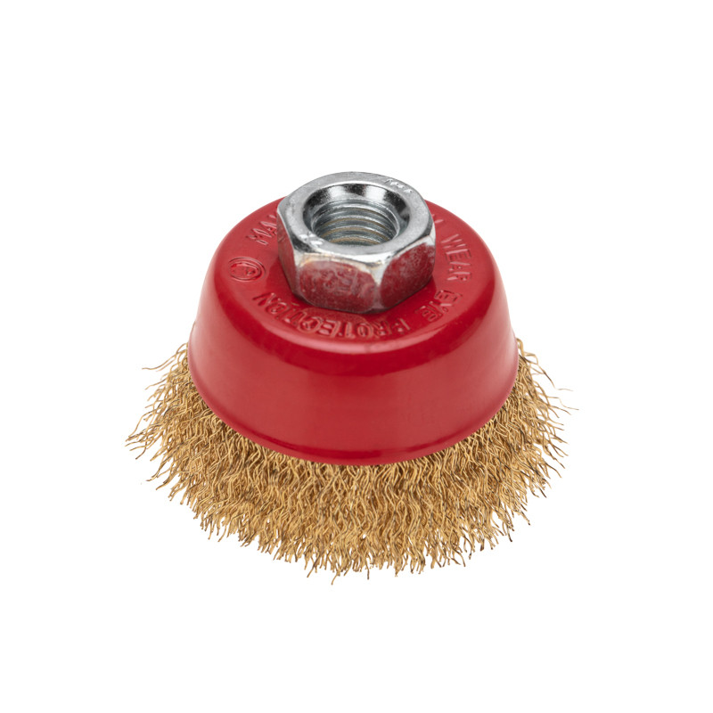 - Преимущества: Латунированная проволока устойчива к коррозии и создает меньше искр при работе|Чашечная форма позволяет обрабатывать поверхности с большой площадью|Тип соединения М14 обеспечивает простоту и надежность установки на УШМ