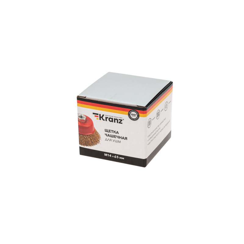 Полное описание товара Щетка чашечная для УШМ, витая латунированная проволока, 65мм, М14 (Kranz) KR-91-1211
