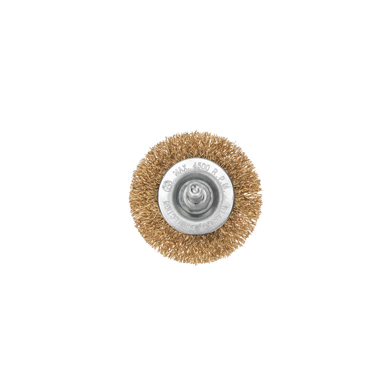 - Преимущества: Витая щетина из латунированной проволоки подходит для аккуратной обработки и шлифовки|Латунированная проволока устойчива к коррозии и создает меньше искр при работе|Подходит для большинства электрических дрелей