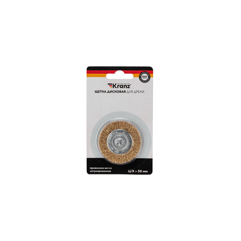 Щетка дисковая для дрели, витая латунированная проволока, 50мм (Kranz) KR-91-1248