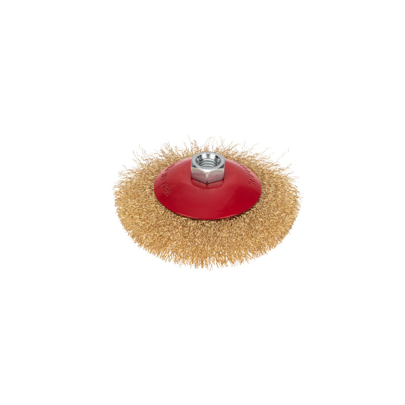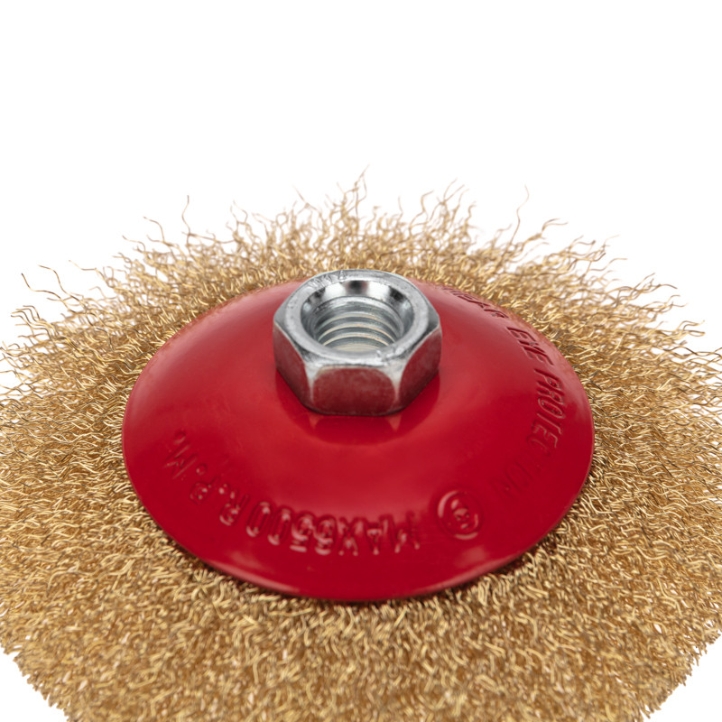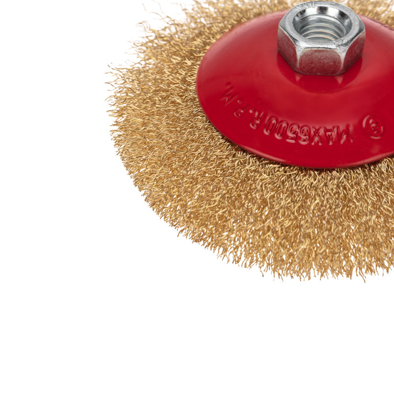 - Преимущества: Латунированная проволока устойчива к коррозии и создает меньше искр при работе|Коническая форма позволяет легко достигать труднодоступные участки|Тип соединения М14 обеспечивает простоту и надежность установки на УШМ