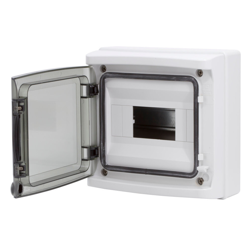Щит настенный с дверцей 8 модулей IP65 серый с клеммным блоком 63А (DKC) RB08W6TGD