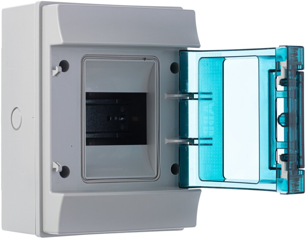 Полное описание товара Щит распределительный навесной 4 модуля ЩРн-п-4 пластиковый Mistral65 серая прозрачная дверь без клемм IP65 (65P04X12) (ABB) 1SL1200A00