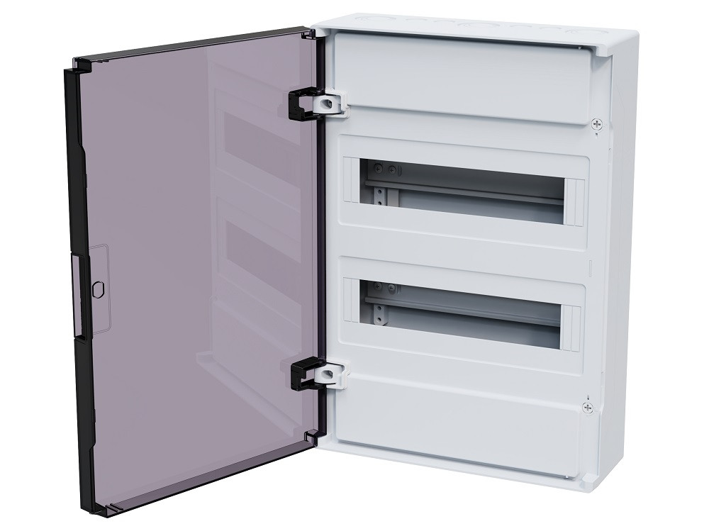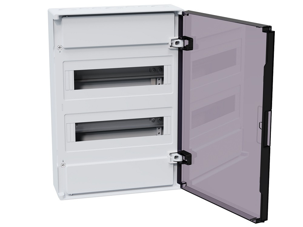 Щит распределительный навесной с пластиковой черной прозрачной дверцей на 24 модуля, OptiBox Pro 24-NKR-IP40 (КЭАЗ) 379798