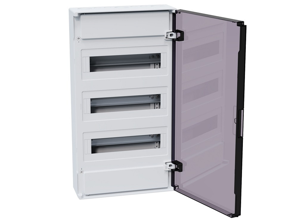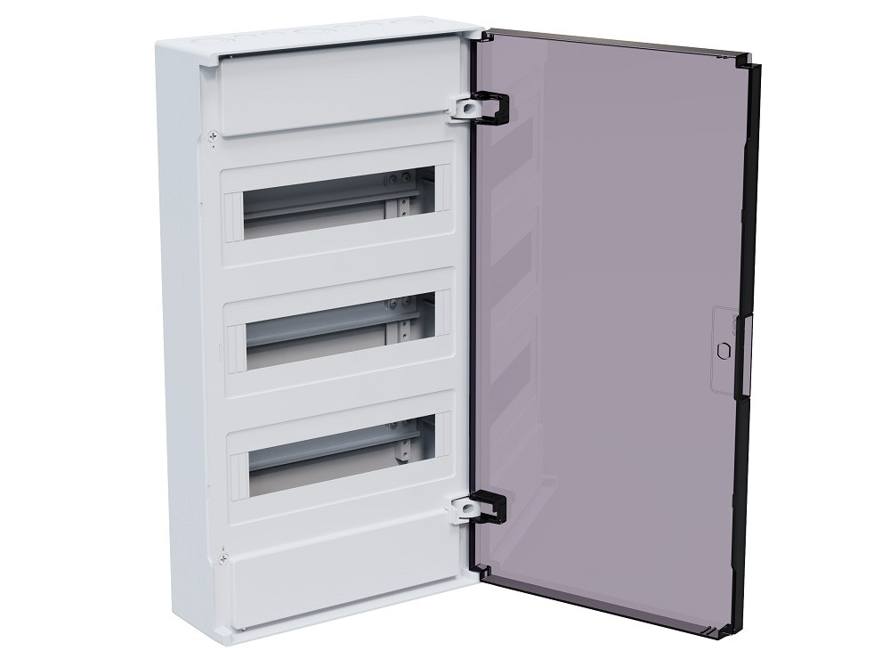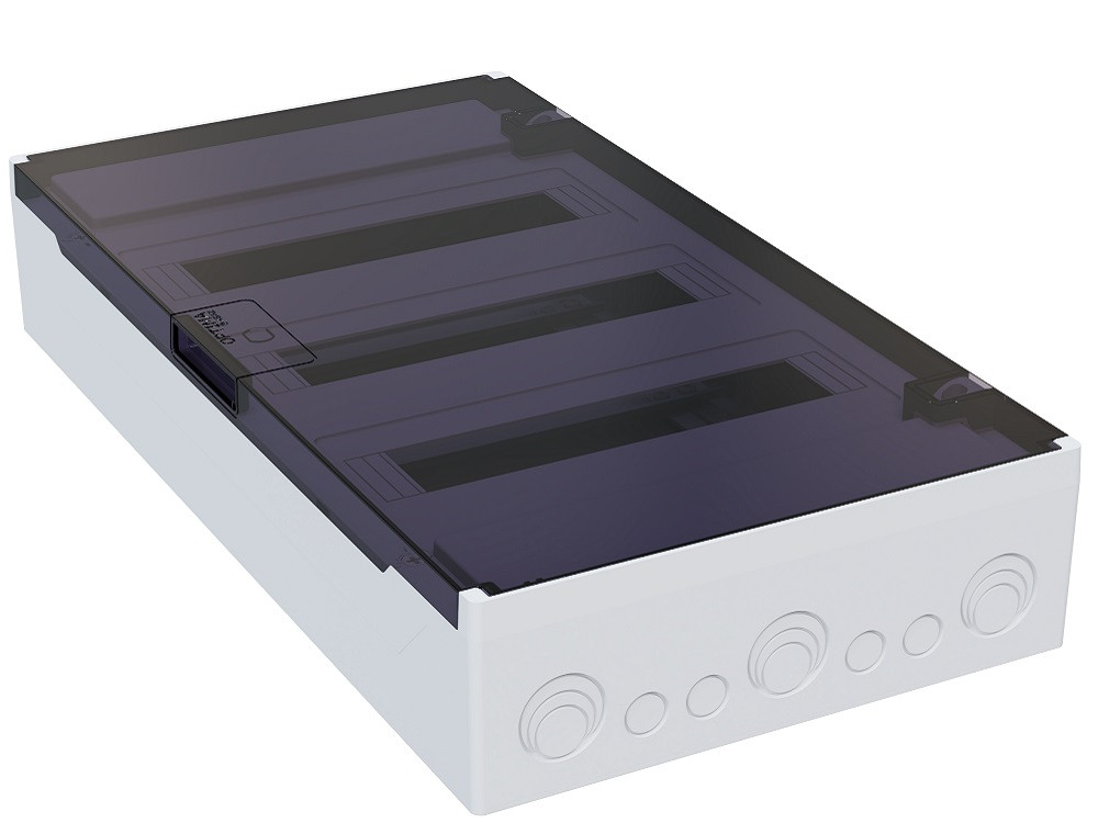 Щит распределительный навесной с пластиковой черной прозрачной дверцей на 36 модулей, OptiBox Pro 36-NKR-IP40 (КЭАЗ) 379803