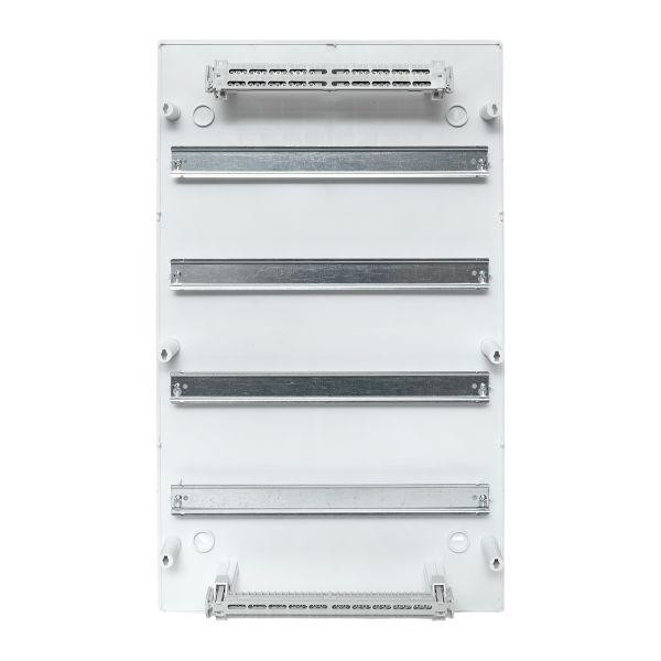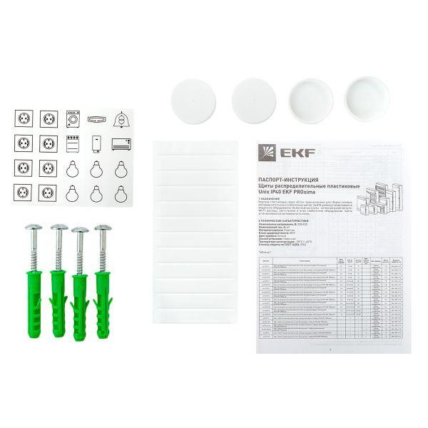 Полное описание товара Щит распределительный навесной Unix белая дверь 4х18 модулей IP41 EKF PROxima (EKF) ux-4x18-nw