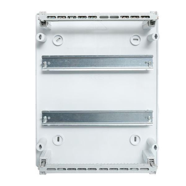 Корпуса пластиковые серии ''Unix IP40'' предназначены для сборки силовых распределительных и слаботочных щитов. На DIN-рейки устанавливается модульное оборудование. На монтажные платы - антенные разветвители, Wi-Fi роутеры, патч-панели и иное слаботочное оборудование. Щиты устанавливаются на поверхность стены. Ассортимент корпусов с din-рейками представлен размерами вместимостью до 72 модулей, по 12 или 18 модулей в ряду, с белой глухой или прозрачной тонированной дверью, с DIN-рейками или перфлорированными монтажными платами. Особенностью корпусов является плоское основание, упрощающее сборку и подключения внутри, лицевая панель. Корпуса изготовлены из качественного глянцевого ABS-пластика, имеют минималистичный дизайн и впишутся в большинство интерьеров.