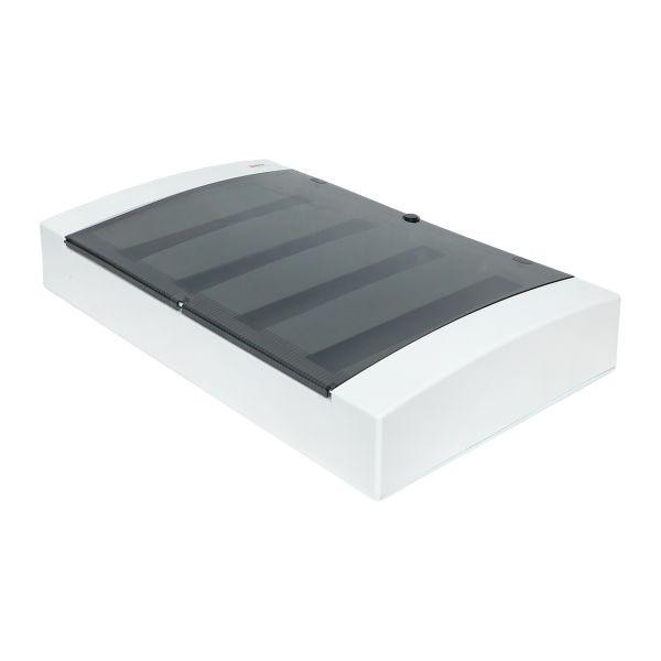Корпуса пластиковые серии «Unix IP40» предназначены для сборки силовых распределительных и слаботочных щитов. На DIN-рейки устанавливается модульное оборудование. На монтажные платы - антенные разветвители, Wi-Fi роутеры, патч-панели и иное слаботочное оборудование. Щиты устанавливаются на поверхность стены. Ассортимент корпусов с din-рейками представлен размерами вместимостью до 72 модулей, по 12 или 18 модулей в ряду, с белой глухой или прозрачной тонированной дверью, с DIN-рейками или перфлорированными монтажными платами. Особенностью корпусов является плоское основание, упрощающее сборку и подключения внутри, лицевая панель Корпуса изготовлены из качественного глянцевого ABS-пластика, имеют минималистичный дизайн и впишутся в большинство интерьеров.
