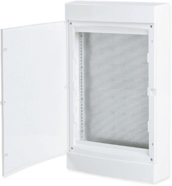 Корпуса пластиковые серии «Unix IP40» предназначены для сборки силовых распределительных и слаботочных щитов. На DIN-рейки устанавливается модульное оборудование. На монтажные платы - антенные разветвители, Wi-Fi роутеры, патч-панели и иное слаботочное оборудование. Щиты устанавливаются на поверхность стены. Ассортимент корпусов с din-рейками представлен размерами вместимостью до 72 модулей, по 12 или 18 модулей в ряду, с белой глухой или прозрачной тонированной дверью, с DIN-рейками или перфлорированными монтажными платами. Особенностью корпусов является плоское основание, упрощающее сборку и подключения внутри, лицевая панель Корпуса изготовлены из качественного глянцевого ABS-пластика, имеют минималистичный дизайн и впишутся в большинство интерьеров.