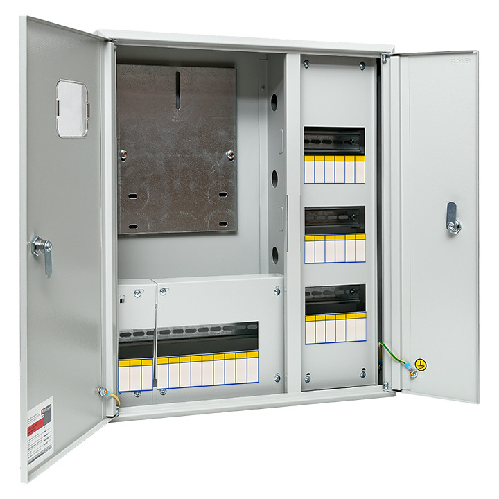 Полное описание товара Щит учетно-распределительный навесной ЩРУн-3/30о IP31 двухдверный с окном 580х490х165 (EKF) mb23-3/30-2