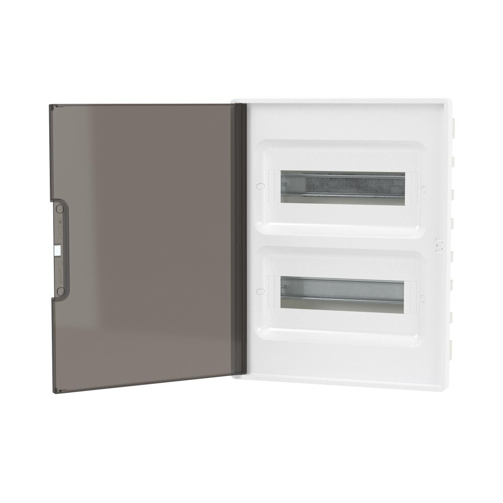 Щиток 24 мод встраиваемый FRAME ЩРв-П-24, белый, с тонированной дверцей, с 4 шинами PEN (2шт на 8 отв. и 2шт на 6 отв.) F24B1WD DKC (DKC)