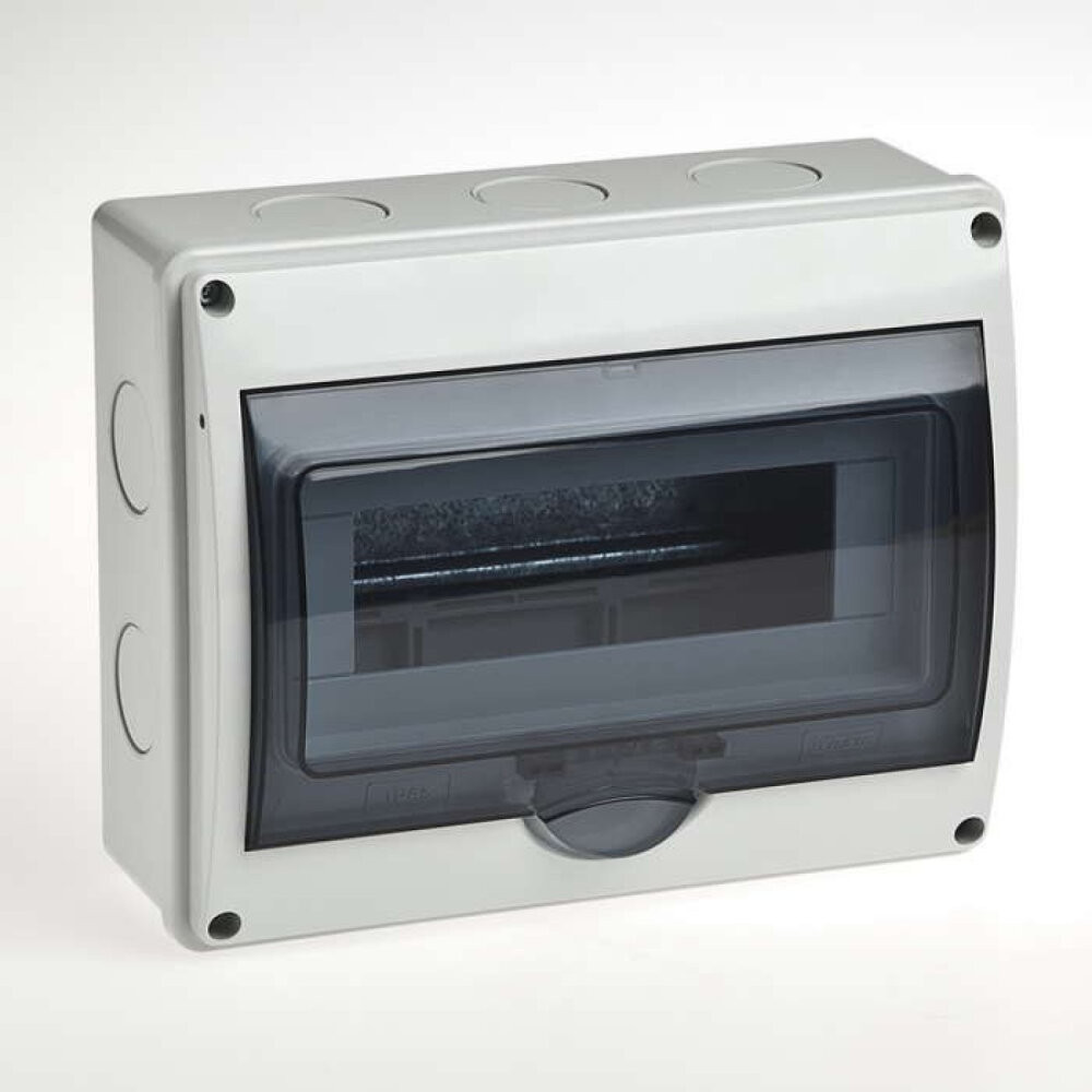 Данная серия щитков подходит для монтажа открытой проводки в зданиях производственного, офисного, а также жилого назначения. Щитки со степенью защиты IP65 представляют собой специальные устройства для установки в них автоматических выключателей или же электронных приборов в целях обеспечения их высокой степени защищенности от пыли и влаги. Они изготовляются из термостойкого АБС-пластика серого цвета, имеют прозрачную вертикальную крышку, которая открывается более чем на 90 градусов. Каждый щиток упакован в индивидуальную упаковку со штрих-кодом, имеет 2 резиновых шнура уплотнителя, шину 'земля-ноль' из латуни, дин-рейку из качественного металла, опору под нулевую шину из пластика, 4 гермоввода. Температура монтажа данного оборудования находится в пределах от -25 до +60 градусов С.