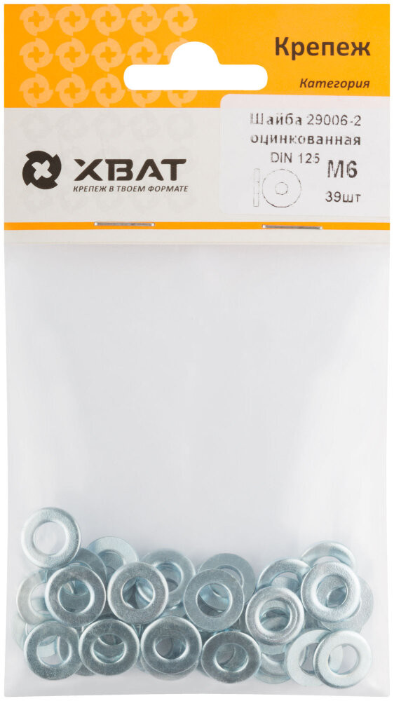 Шайба DIN125 М6 плоская оцинкованная (39 шт) (ХВАТ) 29006-2