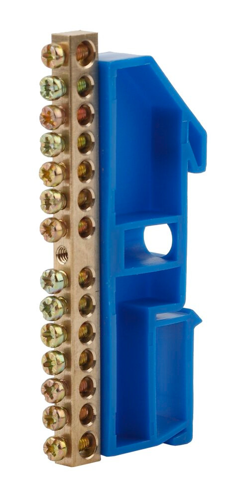 - Преимущества: Прижимные винты изготовлены из оцинкованной стали и обладают скруглённой контактной частью, что исключает перекусывание и повреждение подключаемых проводников|Позволяет свести в одну общую группу все нулевые или заземляющие проводники, входящие и отходящие|Позволяет сократить количество проводников в щитке, что упрощает его обслуживание|Экономия пространства и возможность без особых усилий размещать новые элементы|Обеспечивает стабильное и долговечное соединение