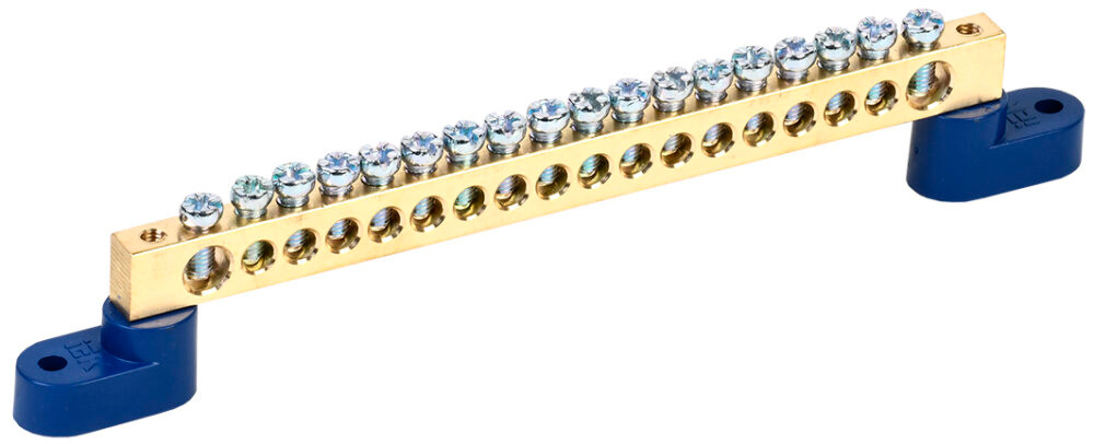 Применяются в щитовом оборудовании для подсоединения нулевых рабочих (N) и нулевых защитных проводов (РЕ). Крепление шины предусмотрено по центру (типы 8/1, 14/1) и по краям (типы 8/2 и 14/2) через изолятор нулевой шины на 35 мм монтажную DIN-рейку и через угловые изоляторы нулевой шины, а также непосредственно на панель щита. При подключении к шинам медных многожильных проводов рекомендуется оконцевание их наконечниками-гильзами. Выполнены из латуни.