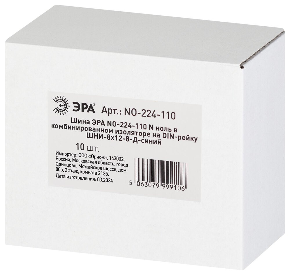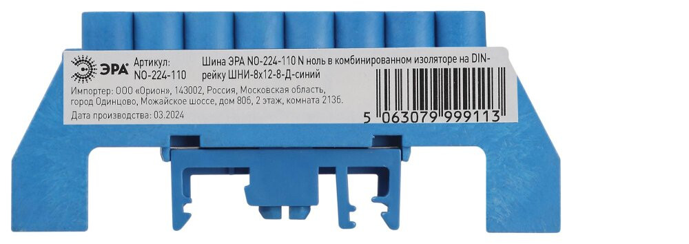 Полное описание товара Шина NO-224-110 N ноль в комбинированном изоляторе на DIN-рейку ШНИ-8х12-8-Д-синий (ЭРА) Б0062964