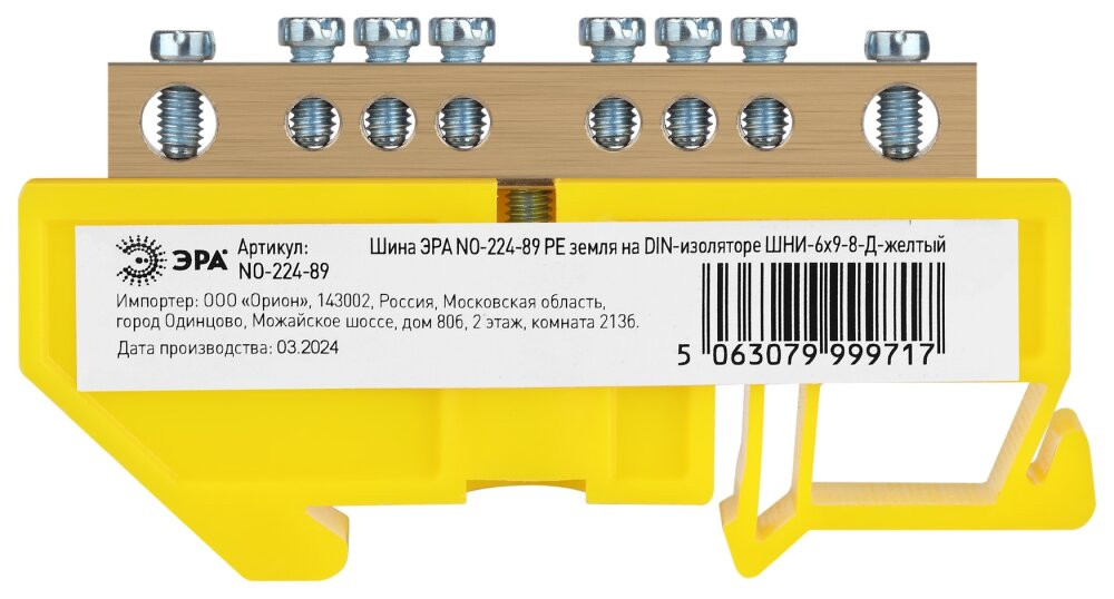 Полное описание товара Шина NO-224-89 PE земля на DIN-изоляторе ШНИ-6х9-8-Д-желтый (ЭРА) Б0062959