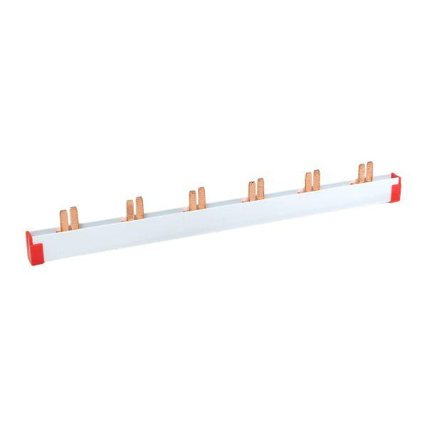 Шины соединительные представляют собой пластины, выполненные из меди (шины на 100 А – из луженой меди), закрепленные в корпусе из диэлектрического материала, не поддерживающего горение, и выпускаются стандартной длиной 1 метр. Шины соединительные делятся на два типа - FORK (вилка) и PIN (гребенка) на номинальные токи 63 и 100 А. Могут быть выполнены в одно- двух- трех- и четырехполюсном исполнений.