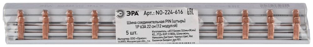 Шина соединительная PIN штырь 1Р 63А 22 см 12 модулей NO-224-616 (ЭРА) Б0067430