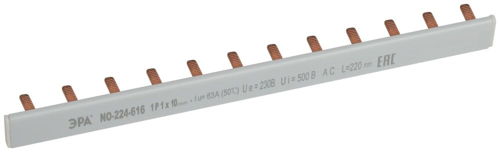 Полное описание товара Шина соединительная PIN штырь 1Р 63А 22 см 12 модулей NO-224-616 (ЭРА) Б0067430