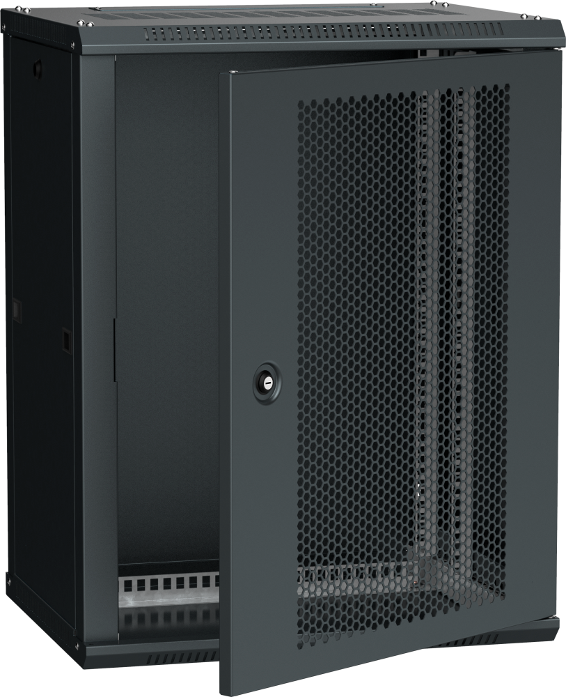 Шкаф LINEA W 600х650мм укомплектованный дверь перфорированная черный RAL9005 (ITK) IND-LW05-18U67-PF-SBZ