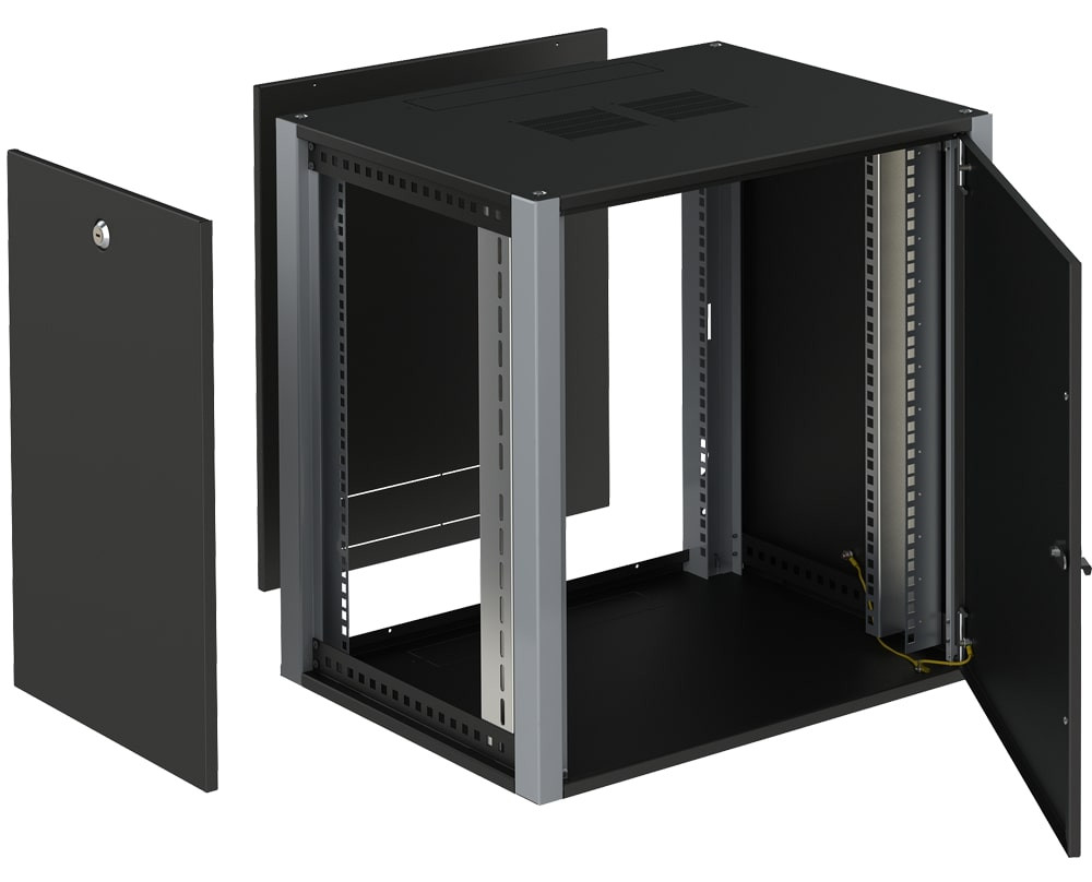 Шкаф телекоммуникационный настенный 19' 12U дверь металл IP20. 600x600x585mm(ШхГхВ) цвет черный(RAL 9004/RAL7000) (SYSMATRIX) WP 6612.920