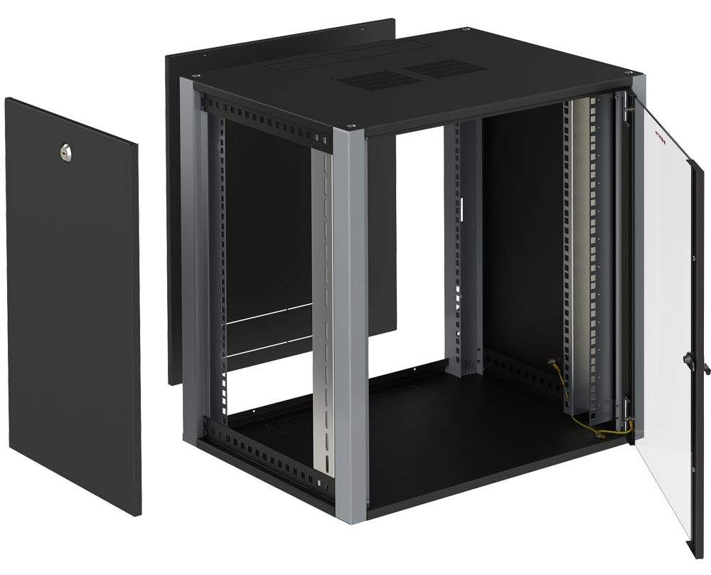 Шкаф телекоммуникационный настенный 19' 12U дверь стекло IP20. 600x450x585mm(ШхГхВ) цвет черный(RAL 9004/RAL7000) (SYSMATRIX) WP 6412.910