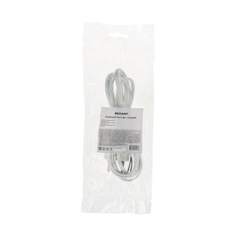 Полное описание товара Шнур сетевой 2х0,75 мм, 1,8 м белый (REXANT) 11-1147