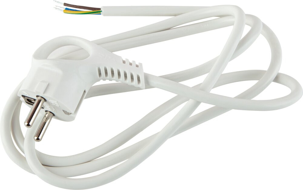 Шнур питания с вилкой U-3x1,5-2m-W с заземлением, провод ПВС с сечением 3х1,5 мм2, длина 2 м, цвет - белый. Провод шнура питания состоит из скрученных жил с надежной ПВХ оболочкой. На конце шнура имеется штепсельная вилка. Изделие предназначено для комплектации или ремонта электрических бытовых приборов.