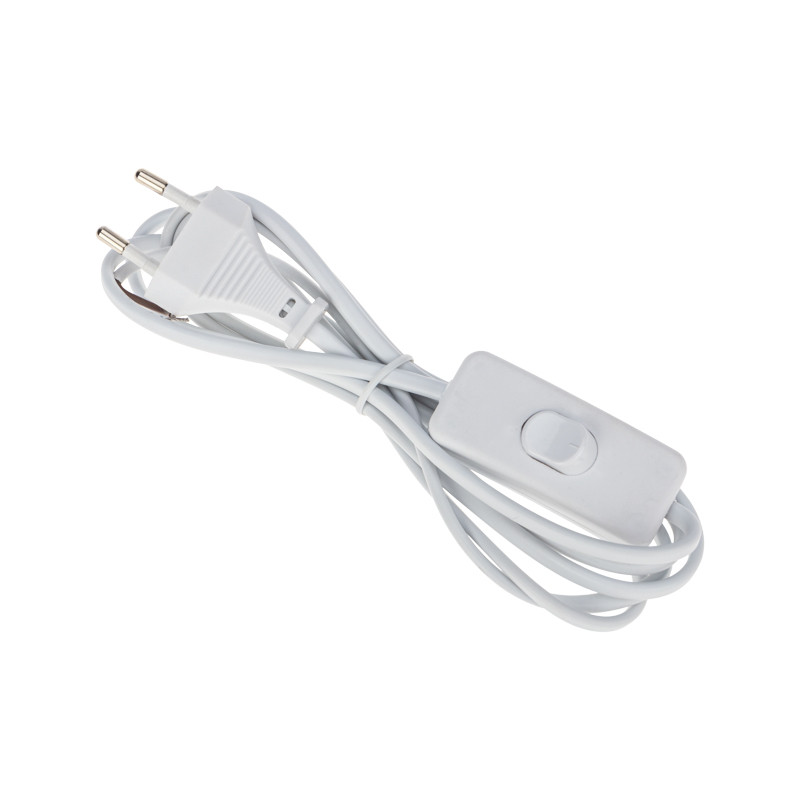Сетевой шнур с выключателем предназначен для подключения бытовых приборов, осветительной техники и т. д. Шнур состоит из провода ШВВП сечением 0,75 мм2, укомплектованного литой неразборной плоской вилкой (Евро), номинальным током 2,5 А, с подготовленными (зачищенными и лужеными) контактами, посередине провода расположен выключатель в корпусе из ABC пластика.