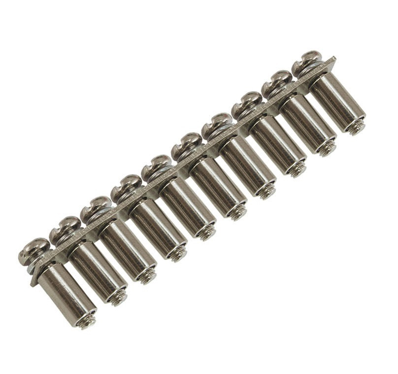 Клеммная перемычка серии ШС-01 DEKraft, предназначена для соединения наборных зажимов серии ЗН-101, количество подключаемых наборных зажимов &ndash, до 10 штук, номинальный ток до 24 А, сечение проводов &ndash, до 2,5 кв.мм, количество в упаковке &ndash, 50 шт.