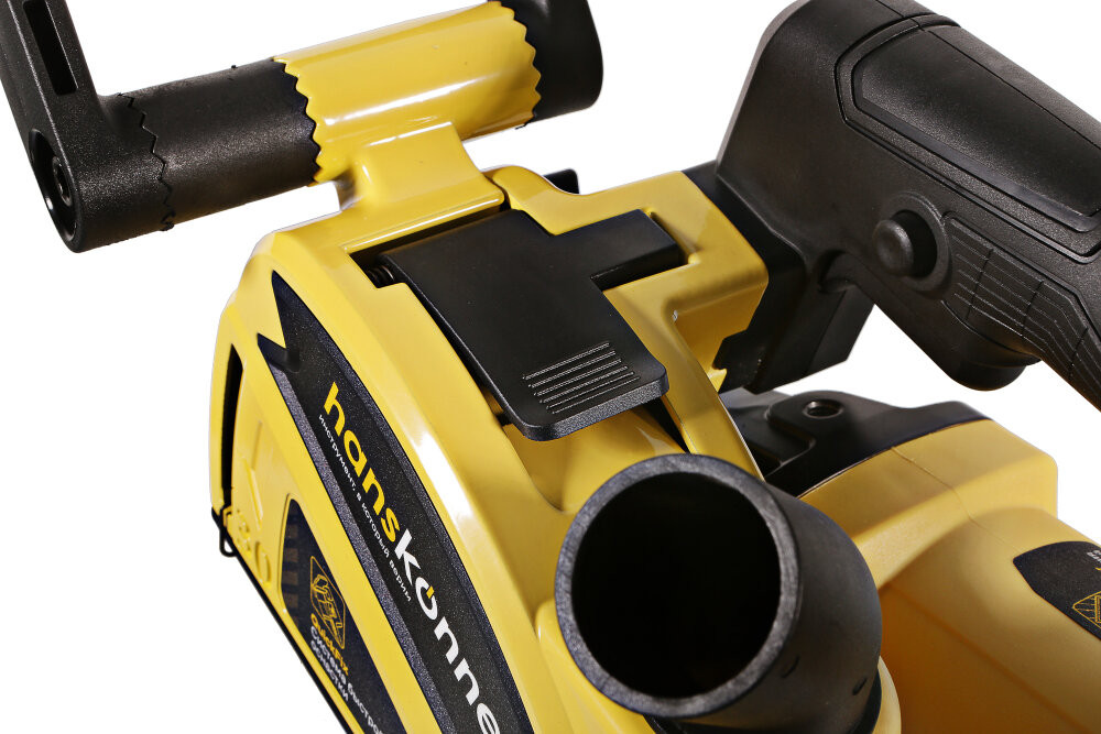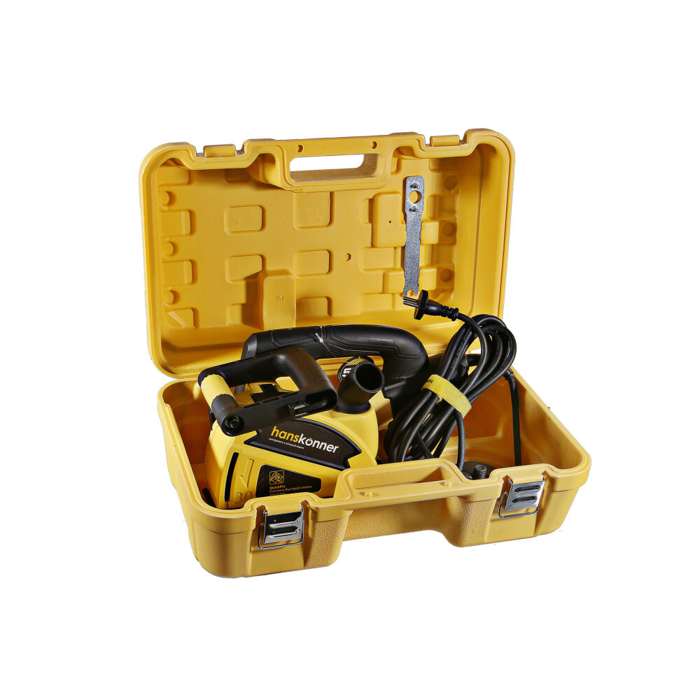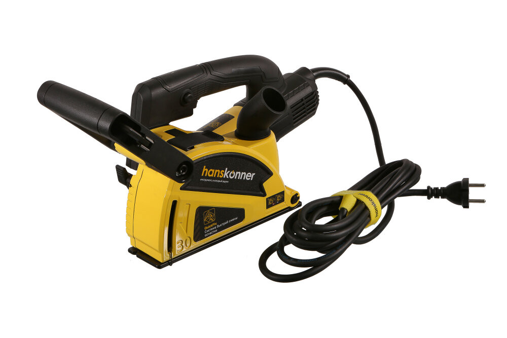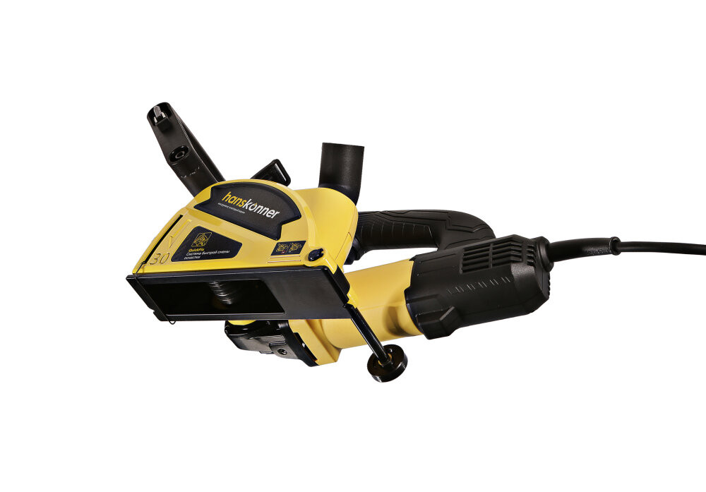 Штроборез Hanskonner HAG9125S - мощный и удобный электроинструмент, предназначенный для резки пазов (штроб) глубиной 0-30 мм и шириной 3-31 мм в бетоне, кирпиче, камне без использования воды. Данная модель оснащена современными электронными системами. Плавный пуск снижает вибрации при включении и таким образом продлевает срок службы инструмента. Константная электроника сохраняет постоянство скорости вращения при нагрузке, что способствует большей производительности. В интересах соблюдения чистоты рабочего пространства в наличии патрубок для подключения к пылесосу. QuickFix - специальный рычаг для быстрой смены оснастки способствует комфортности в обращении с инструментом. Бронированный ротор и статор электродвигателя вместе с защитой от перегрузок благоприятствует долговечности. Морозостойкий резиновый сетевой кабель длинной 4 м, позволяет охватит рабочую зону площадью 50 м2.