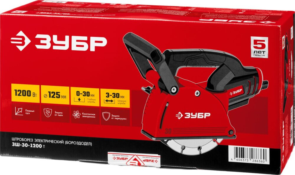 Полное описание товара Штроборез (бороздодел), 125 мм, 1200 Вт (ЗУБР) ЗШ-30-1200 Т