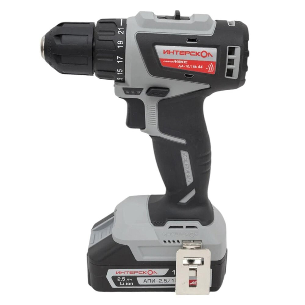 Полное описание товара Шуруповерт аккумуляторный бесщеточный ДА-10/18В 44 МиниМАКС Li-ion АПИ (кейс, 2 аккум. 2,5Ач, ЗУ) (Интерскол) 759.2.2.45