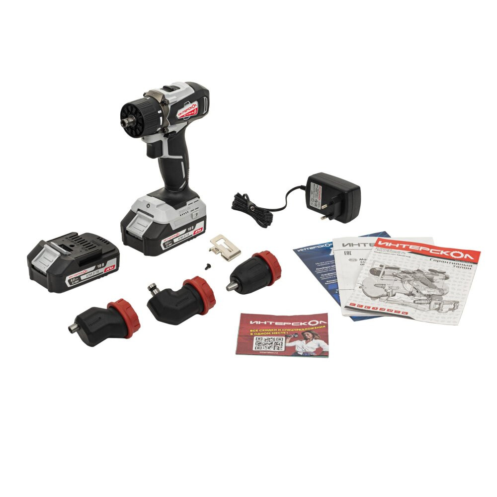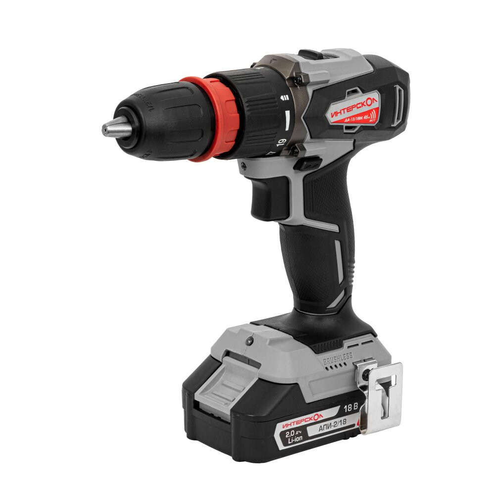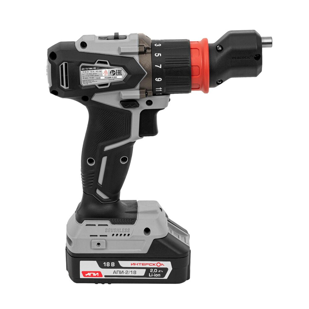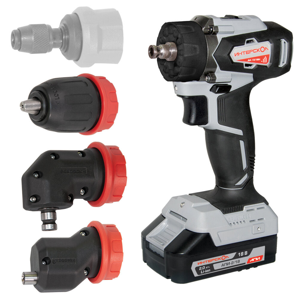 Полное описание товара Шуруповерт аккумуляторный бесщеточный ДА-13/18ВК 45 комби АПИ (Li-ion, кейс, 2 аккум., 2Ач, 3 насадки), (Интерскол) 575.2.2.78