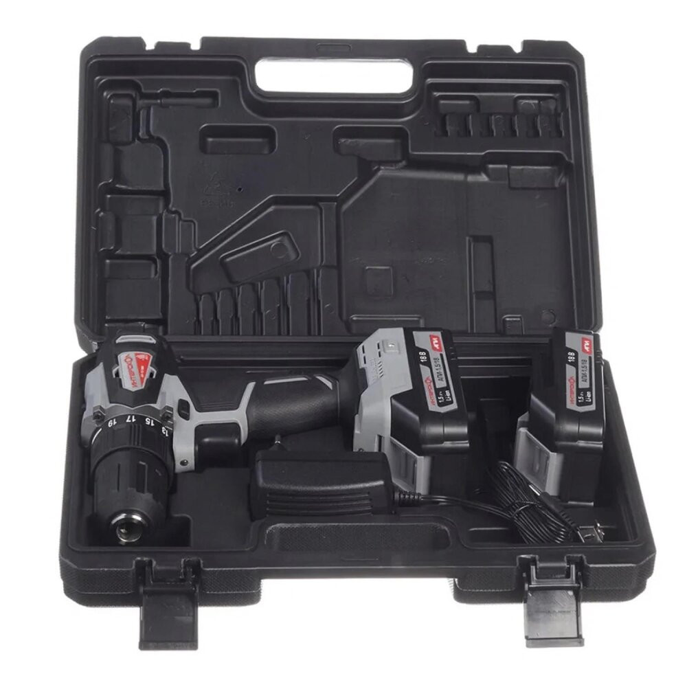 - Комплектация: да-13/18вк бесщеточная аккумуляторная дрель-шуруповерт – 1 шт|аккумуляторная батарея апи-18/1,5 емкостью 1,5 а ч – 2 шт|настольное зарядное устройство зу-1,5/18 – 1 шт|кейс – 1 шт|инструкция – 1 шт