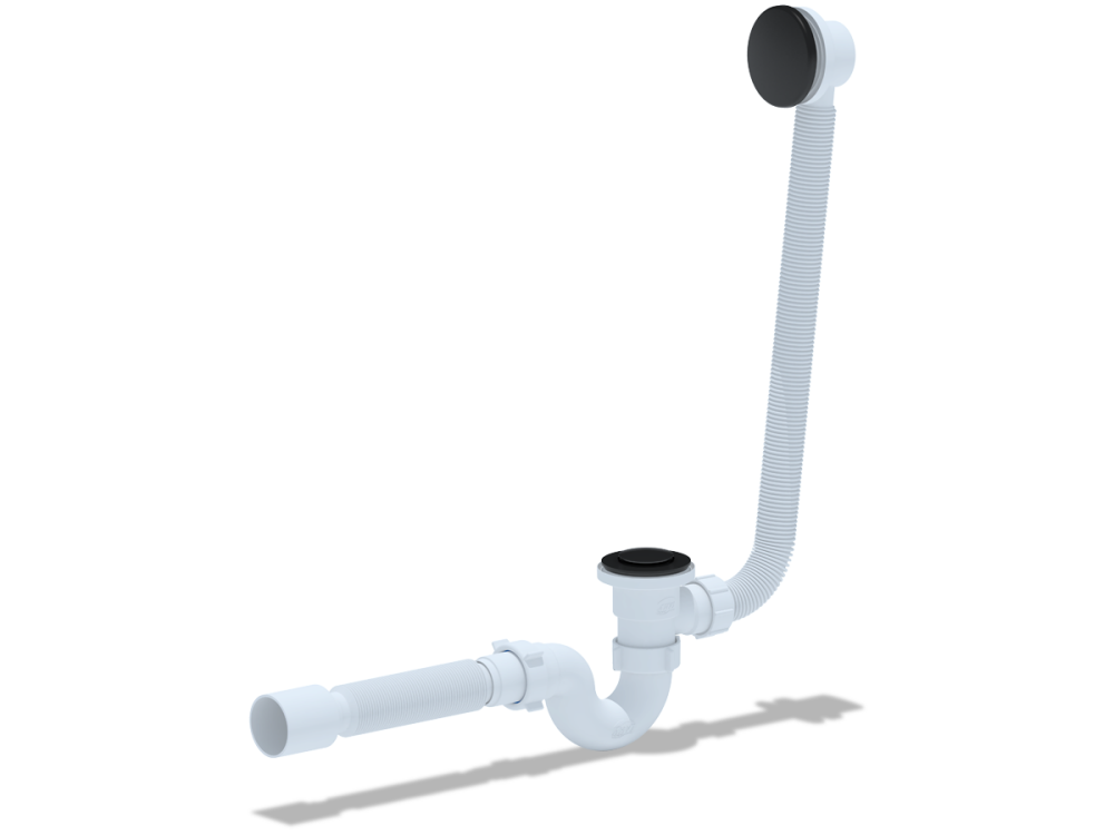 Сифон комплектуется металлическим выпуском ''клик-клак''. Механизм ''клик-клак'' приводится в действие путем нажатия на выпуск, при этом открывается или блокируется выпуск воды в канализацию. Самый простой сифон для ванны, имеющий всего один параметр регулировки. Изменение направления слива воды возможно путем разворота в месте присоединения к выпуску. Благодаря своей форме прямоточный сифон имеет высокую скорость слива сточной воды, а так же самый простой способ прочистки без демонтажа. Сифон прост в установке и выполняет свою главную функцию - формирование гидрозатвора для отсечения неприятных запахов из канализации. Внимание! Механизм клик-клака закручивается с помощью ключа на 9 мм при снятой пробке, усилие составляет 1 Н/м. Герметичность конструкции обеспечивается мягкой нижней прокладкой под ванной, для долгой работы без поломок не перетягивайте клик-клак!