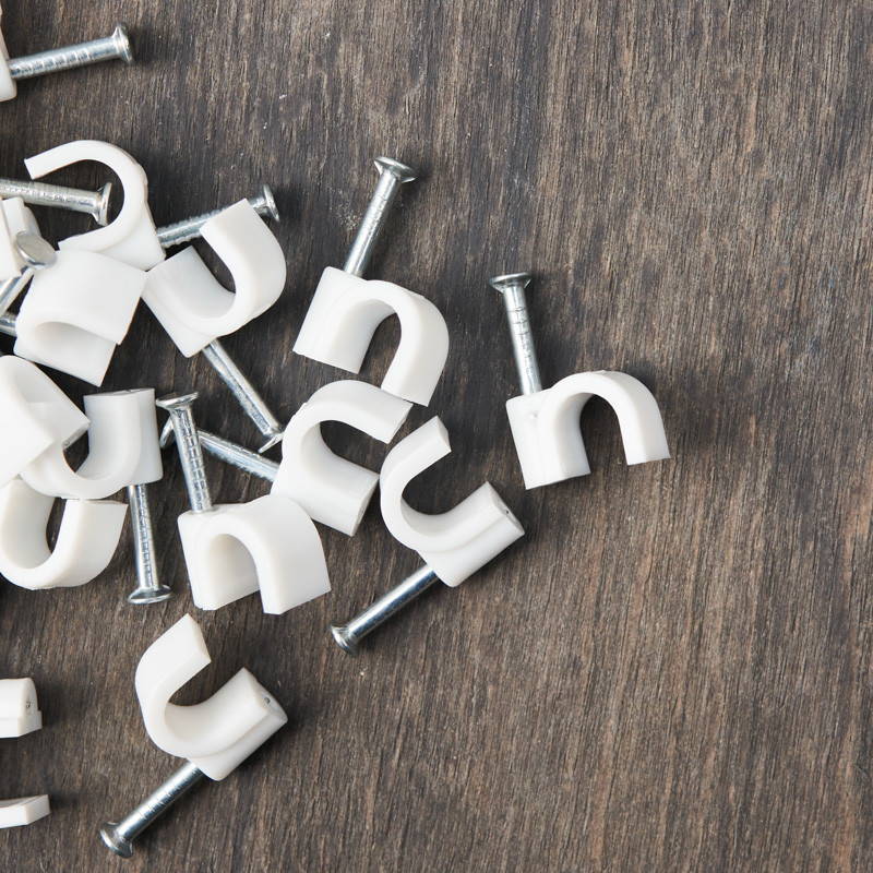 Круглый крепеж 6 мм с гвоздем предназначен для фиксации круглого кабеля к деревянной поверхности. Такой крепеж будет особенно полезен для использования на даче или в частном деревянном доме. Представляет собой дугообразную скобу белого цвета, выполненную из качественного пластика, с гвоздем в специальном отверстии. Скоба используется для мгновенного и надежного крепления проводов и кабелей к поверхностям стен, несущих конструкций и потолков. Гвоздь выполнен из закаленной стали, что позволяет закрепить его даже в плотной и твердой древесине без риска погнуть или сломать.