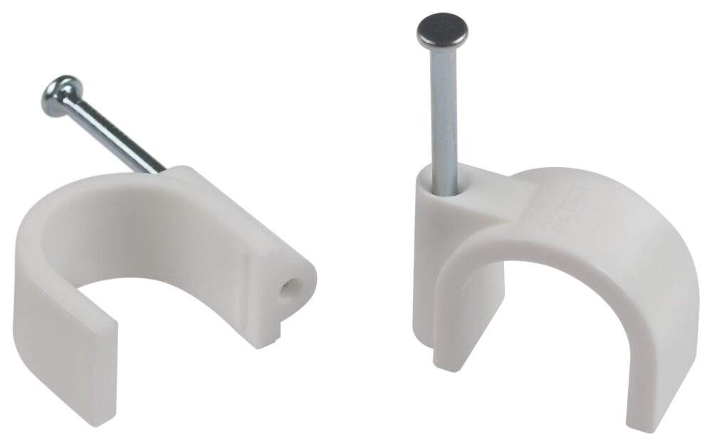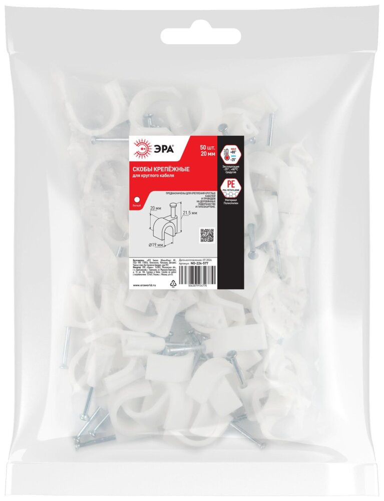 Полное описание товара Скоба пластиковая крепежная круглая 20 мм белая NO-224-577 (50 шт/уп) (ЭРА) Б0066658