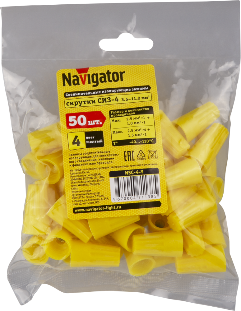 Скрутка СИЗ-4 3.5-11 желтый (50 шт) (Navigator Group) 71138