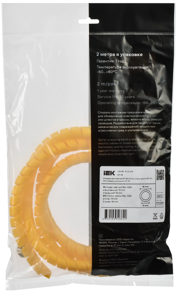 Полное описание товара Спираль монтажная СП-16 желтая (2м/упак) IEK (IEK) USWB1-16-02-K05