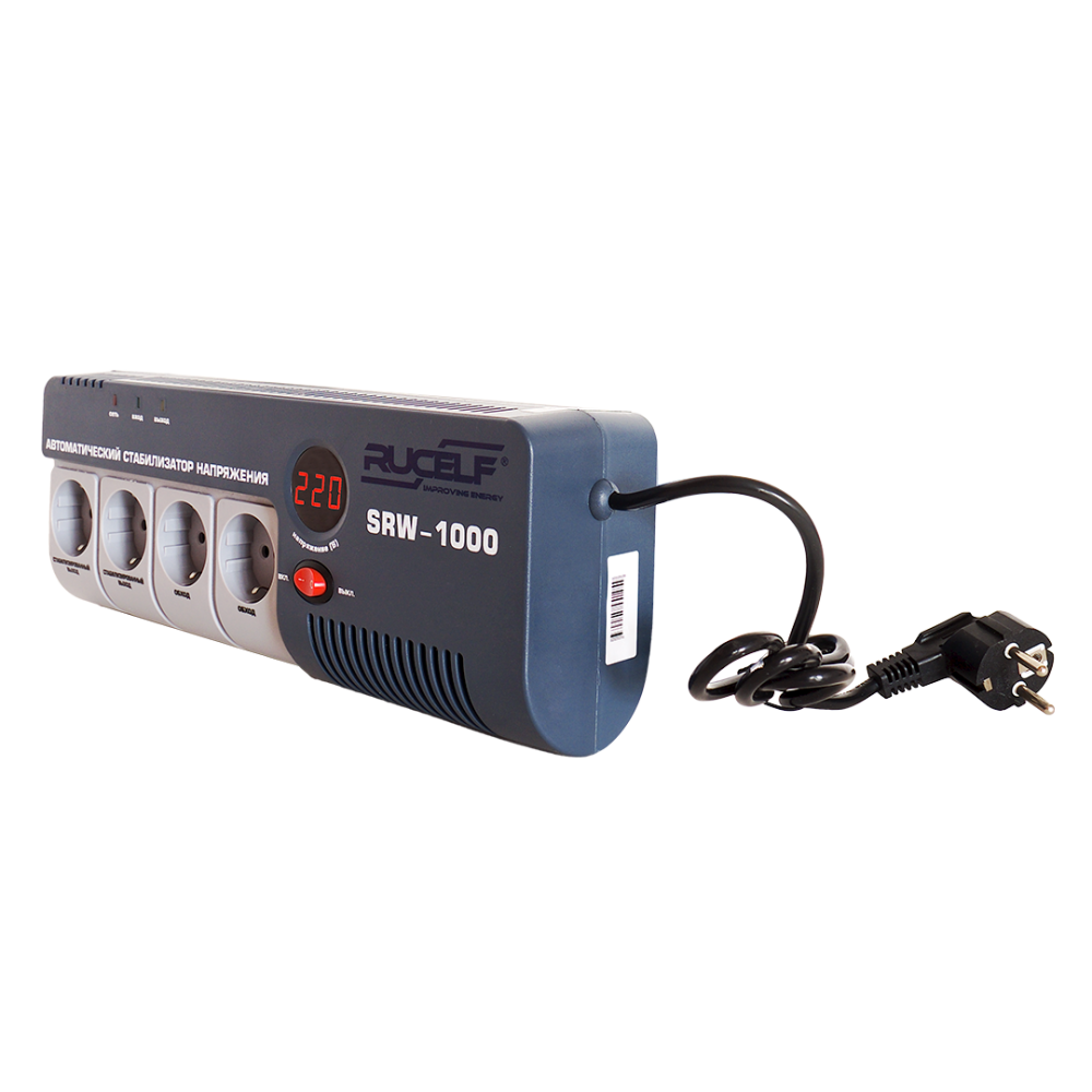 Полное описание товара Стабилизатор напряжения релейный однофазный 1 кВА навесной (RUCELF) SRW-1000-D