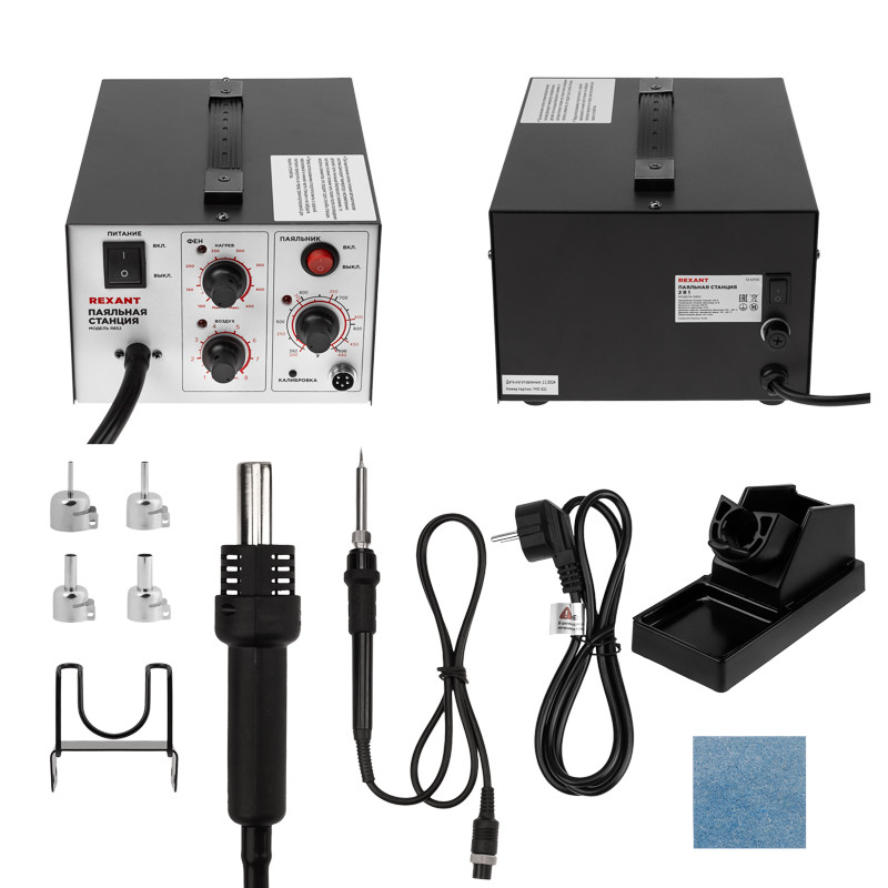 Полное описание товара Станция паяльная, 2 в 1: паяльник+термофен (REXANT) 12-0723