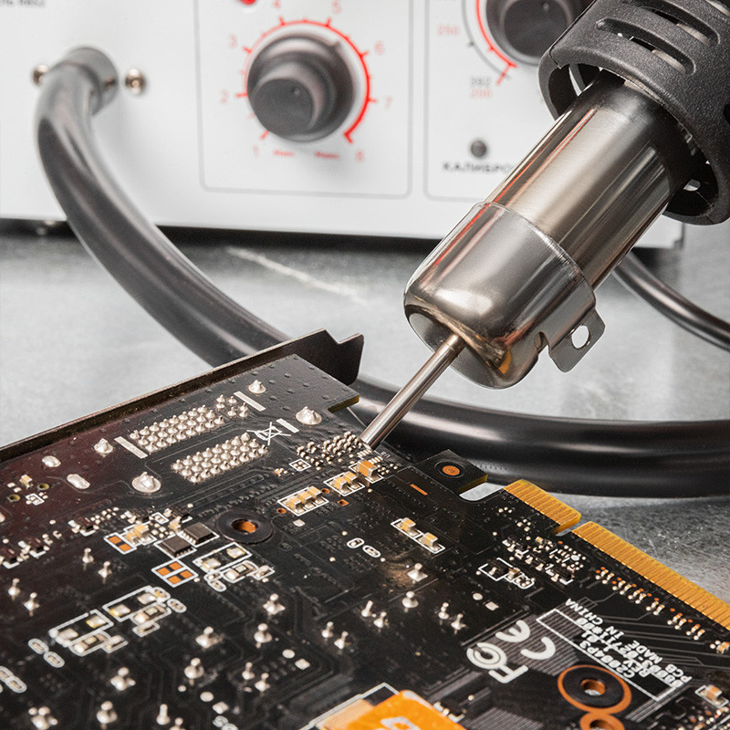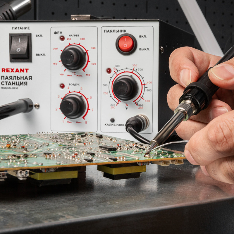 Универсальная паяльная станция (R852) 2 в 1 с компрессорным феном и паяльником предназначена для демонтажа или пайки различных видов компонентов, таких как SOIC, PLCC, QFP, BGA и т. д. Прибор оснащен ручным регулятором рабочей температуры жала паяльника, фена и воздушного потока с аналоговой шкалой. Широкий диапазон рабочих температур позволяет применять паяльную станцию для работ различной сложности и в любых условиях. Устройство разогревается быстро и равномерно, а после выключения автоматически охлаждается.